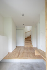 内部は樺桜のフローリングにシナ合板を合わせて、白を基調とした落ち着きのある空間にまとめました。
