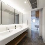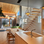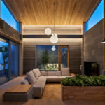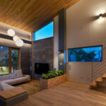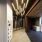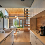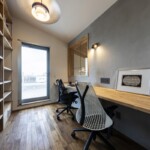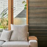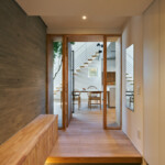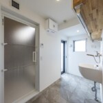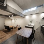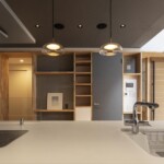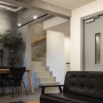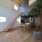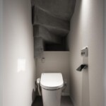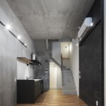 最上階の最上級グレードの住戸は、左官職人挾土秀平氏による左官壁や、吹き抜けに面した板張り天井、杉板型枠コンクリート壁など、贅を凝らした素材を使いつつ、全体的に統一感のある落ち着いた佇まいの住戸となっています。