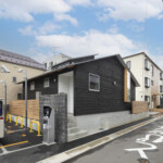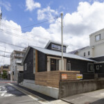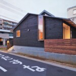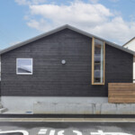 外壁には焼杉を採用し、切妻屋根で周囲に馴染みながらも、個性的な外観を演出しています。