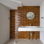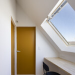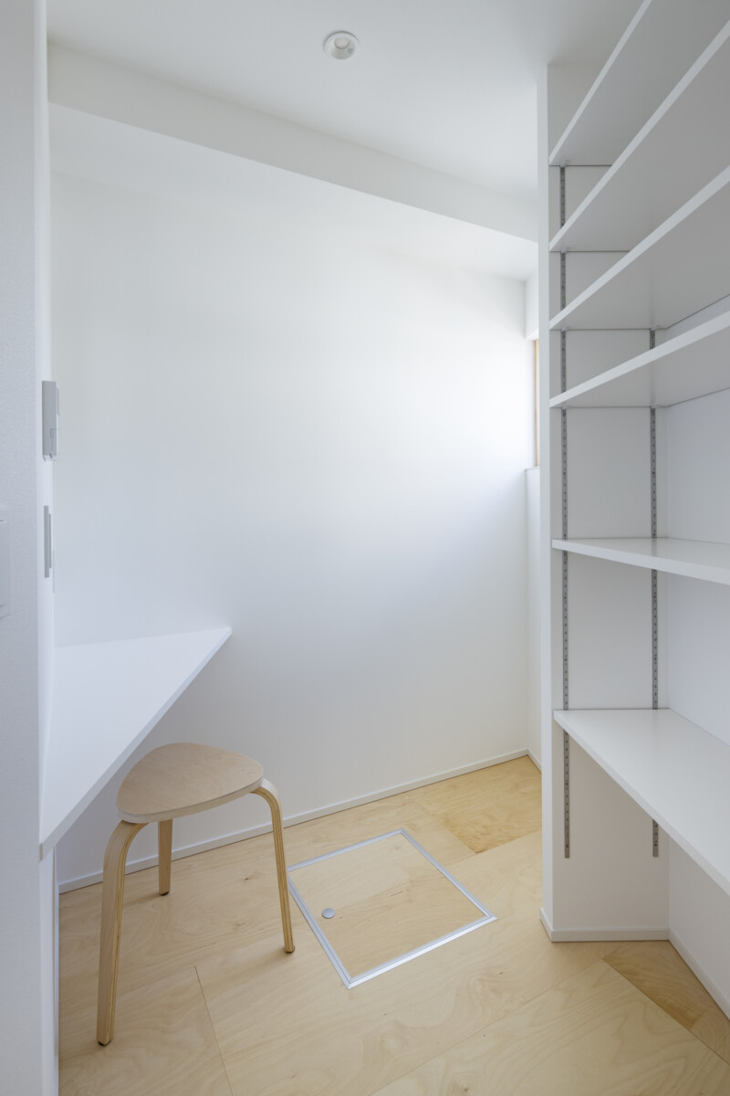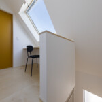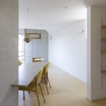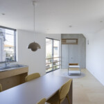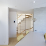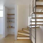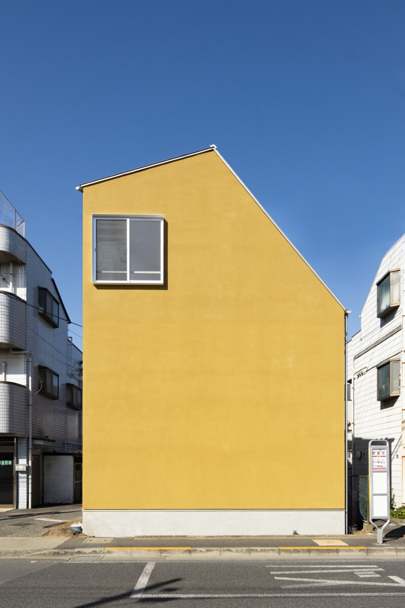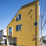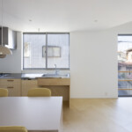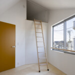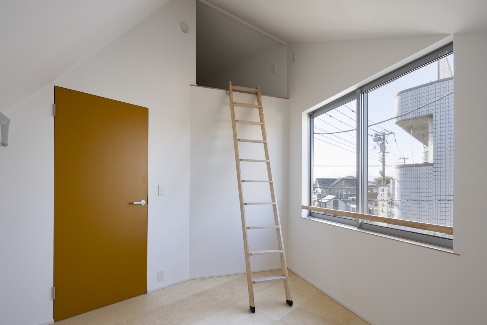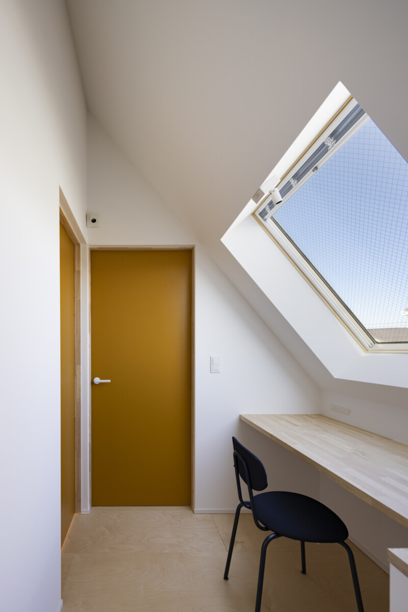 厳しい高さ制限や容積率の中で必要な面積を確保するために、各階のボリュームを丁寧に整理し、光の入り方や風の通り方を細やかに整えています。台形の広がる部分と絞られる部分を積極的に空間へ取り込み、場所ごとに異なる奥行きと視線の抜けをつくることで、限られた面積でも広がりを感じられる構成としました。