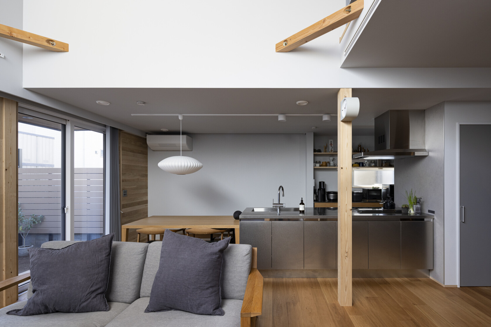 グレーと木目をベースにシンプルかつ温もりの感じる空間に仕上げています。