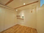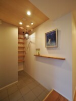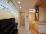 まず、狭小地で建てられる面積に限りがある中、出来るだけ広く感じられるような設計を心掛けました。1階は個室と水廻りを配置し、廊下はなるべく短くなるように。2階はLDKとし、勾配天井とすることで、高さ方向に対しても広さを感じる計画としました。