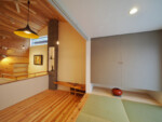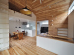 また、木材を使ったカフェのような空間がお好みということで、リビングの壁と天井を板張りとして、木材の温かみを感じられるようにしました。