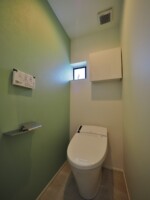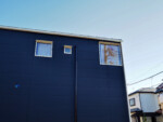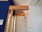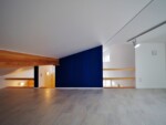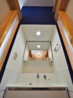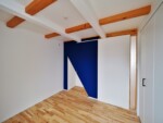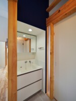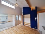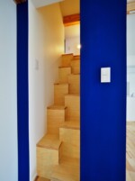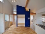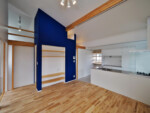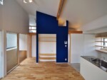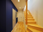 アクセントとして、住宅の中心部分に濃藍色の塗装を塗り、外観との調和を図っています。