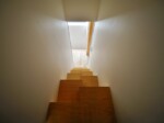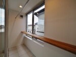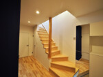 南側の住宅に影響されず、日当たりと風通しを確保する方法として、2階リビングを採用し、屋根形状を片流れにして、天井を勾配なりに仕上げることで、南側住戸の屋根の上から日当たりと風通しを確保しました。また、階段を南側に設けることで、1階にも階段上部からやさしい光が降り注ぎます。