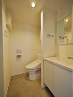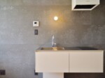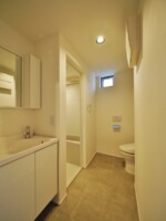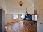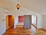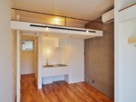 内部については、賃貸部分はシンプルな作りとすることを心掛けて、オーナー宅については、依頼主の好みであるモロカンスタイルをイメージして計画しました。ビビットな赤や青などの塗り壁をアクセントで取り入れ、垂れ壁はアール形状としています。また、狭い面積でも広く感じるように間仕切りをできる限り少なくし、空間に広がりが感じられるように考慮しています。