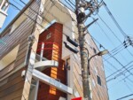 外壁はメインにガルバリウム鋼板を採用し、ゴールド、シルバー、ブラウンの三色を組み合わせ、周辺環境に配慮しながらも、他にはないような外観を作り上げました。